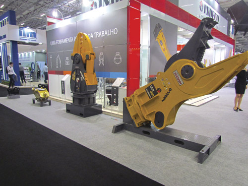 A empresa italiana apresentou uma linha de produtos para demolição e reciclagem, tendo à frente o lançamento do rompedor HP2750 FS. Apresentado como um martelo médio, o equipamento é indicado para aplicações como demolições de edifícios, escavação em áreas urbanas e demolição em pedreiras. “O rompedor pode ser utilizado em escavadeiras com esteiras com peso do martelo em condições de trabalho de 1.690 kg e 3.700 joules de energia”, especificou Luiz C. Ginefra Toni, diretor da empresa no Brasil. A marca também exibiu tesouras hidráulicas, pulverizadores de concreto, placas compactadoras, garras selecionadoras e braços posicionadores, além de um equipamento multifunção voltado para o segmento de demolição e reciclagem. “Esses produtos são frutos de pesquisa e desenvolvimento, resultando em materiais mais leves e resistentes.”