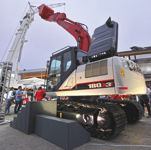 Além das escavadeiras de mineração, a empresa levou à feira uma escavadeira na faixa de 15 t – a SY155H, pela primeira vez exportada pela China. Aliás, se a mineração tem impulsionado os negócios da empresa no país, o setor de construção também já mostra sinais de recuperação. “Em 2018 houve certa reação nas vendas, com muitas consultas tanto para construção como para mineração”, disse Chiao. “Assim, a previsão é de aumento de 10% nas vendas em relação a 2017.”