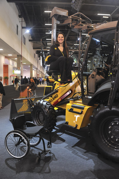 Junto a vários outros equipamentos, a marca mostrou uma versão conceito da retroescavadeira B95B, abrindo um novo mercado de trabalho até então inatingível para operadores com mobilidade reduzida.