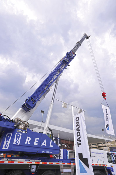 Equipado com o sistema Lift Adjuster, o guindaste ATF 100G-4 foi a vedete da Tadano na área externa