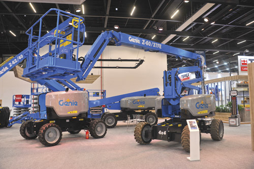 8, 10, 12 e 14 m, além de plataformas de trabalho aéreo a diesel. Com 85 pés, o modelo SJ85AJ 4x4 foi uma das novidades da empresa no evento, além de opções com 46, 63 e 85 pés, articuladas e a diesel. “Tentamos produzir modelos de equipamentos com simplicidade, que possam ser facilmente assimiláveis, sempre pensando no mercado de locação”, explicou José Sommariva, diretor da empresa para a América Latina. De acordo com ele, equipamentos como esse perfil são os mais procurados em empresas de rental. “Além disso, eles possuem preço mais competitivo, baixo custo operacional e bom valor de revenda”, complementou.
