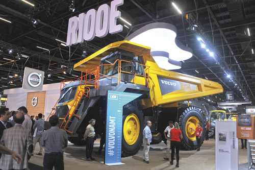 Junto a outros equipamentos, a Volvo mostrou na feira seu novo caminhão rígido fora de estrada R100E