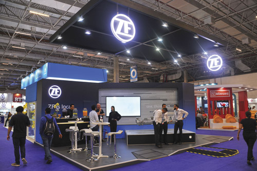 Além de seus tradicionais eixos traseiros e dianteiros, um novo “Pacote de Eficiência” que promete aumentar significativamente a produtividade foi o destaque da marca alemã na feira. Segundo o gerente da unidade de negócios para tecnologia industrial na América do Sul, Paulo Vecchia, a nova versão de seu “Pacote de Eficiência” é de fato um sistema inovador, que possibilita a perfeita harmonização técnica entre as transmissões e os eixos da marca. “Ele alia um melhor funcionamento do equipamento com alto conforto na condução, contribuindo assim para um aumento significativo da produtividade”, declarou. Desse modo, o executivo garantiu que o novo “Pacote de Eficiência” reduz o consumo de combustível de 15% a 20%, além de minimizar em 15% os custos de manutenção. “Trata-se de um produto que proporciona um aumento de 40% na produtividade do equipamento e de 60% na eficiência de combustível, tomando-se como parâmetro a quantidade de material que a máquina pode mover por litro de combustível”, destacou.