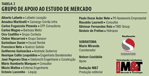 Já na 14ª edição, o Estudo Sobratema do Mercado Brasileiro de Equipamentos para Construção é a principal referência sobre a demanda do mercado de máquinas pesadas no Hemisfério Sul. Anualmente, seus resultados são divulgados de forma consolidada, sendo que nenhum dado é publicado de forma individual, de forma que possa se identificar o autor.