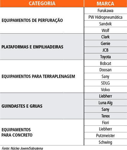 Contabilizam-se 100% das vendas de equipamentos, mesmo sabendo-se que há compras realizadas por setores fora da construção, com exceção de Tratores de Pneus pesados. Para Caminhões Rodoviários (Carrocerias sobre Chassis), especificamente, as quantidades indicadas não decorrem de informações confidenciais fornecidas por fabricantes, mas de estimativas feitas pela Sobratema de quantidades demandadas por empresas do setor de construção, a partir de dados publicados pelas entidades citadas acima.