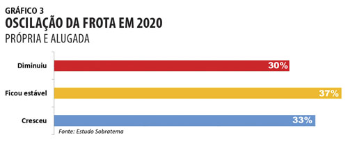 É preciso considerar ainda que está em curso no mundo todo uma mudança de cultura em relação à opção pelo rental, o que não poderia ser diferente no Brasil. Nesse contexto, foram analisadas as respostas das sondagens de 2019 e 2020 no que tange à frota total (própria e alugada), buscando aferir se o parque cresceu ou diminuiu nas empresas que responderam às sondagens.