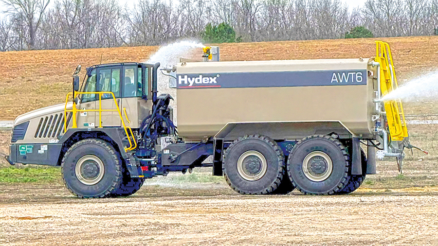 A Hydex adaptou os articulados Rokbak como caminhões-pipa de alta capacidade para atender à demanda por supressão de poeira na América do Norte, à medida que as regulamentações se tornam mais rígidas. Com motor de 370 cv, o modelo RA30 carrega tanque de 22,7 mil litros, enquanto o RA40 (de 444 cv) é combinado com tanque de 34 mil litros.