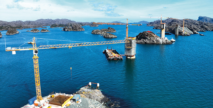 Posicionado a 625 m sobre o rio, guindaste viabilizou obra em ponte na China. Foto:MANITOWOC