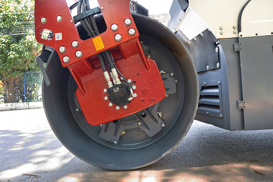 A fabricante afirma facilitar a manutenção por meio de tecnologia embarcada. Segundo Júnior, o sistema Active Bouncing Control previne “pulos” do tambor. “Já a solução de telemetria Dyn@Link permite programar preventivas, aumentando a vida útil e evitando paradas inesperadas”, assegura. Segundo Neukamp, da Hamm, os cuidados com rolos oscilatórios devem ser os mesmos tomados com vibratórios, incluindo inspeção diária para garantir a integridade do sistema hidráulico. “A Hamm possui um sistema oscilatório livre de manutenção”, informa. “Basta selecionar a oscilação como modo de compactação, pois o sistema é autorregulável quanto à amplitude, sendo que a variação do deslocamento tangencial é dada pela rigidez do pavimento.”