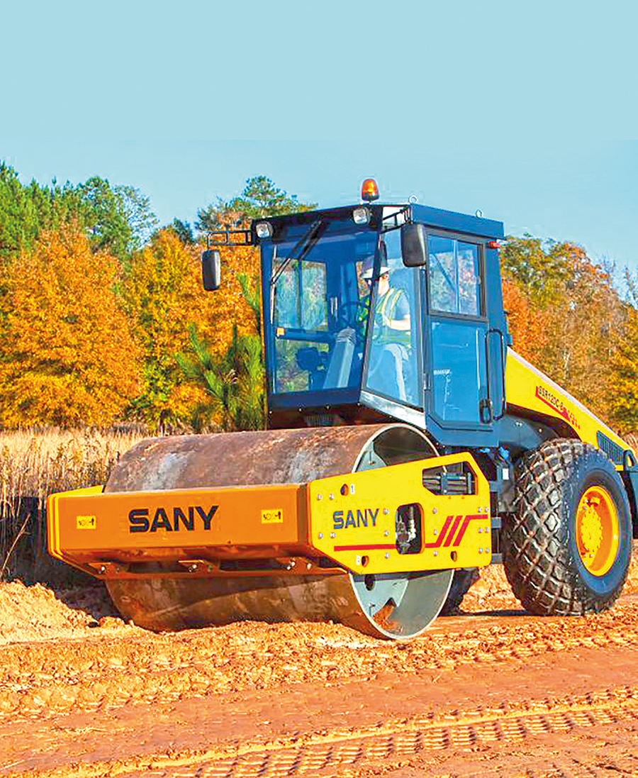 Equipados com eixo dotado de massa excêntrica, os modelos vibratórios garantem melhor acomodação dos agregados por meio de força sinusoidal. Foto: SANY