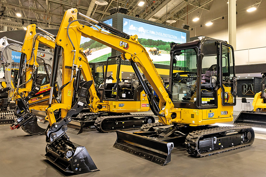 A fabricante ocupou dois estandes, divididos entre motores industriais e equipamentos, reunindo destaques como a nova geração de motoniveladoras 150 e 160 e o trator médio de esteiras D6 XE, um modelo híbrido pioneiro da marca em acionamento elétrico. Em escavadeiras, o novo modelo 319 ganhou destaque com raio e estrutura compactos, além dos modelos 303.5 (foto) e 304. Para pavimentação, a marca levou a pavimentadora AP1055, que recebeu atualizações orientadas pelos clientes, assim como uma nova placa lisa de vida útil prolongada para o sistema de mesa SDX.