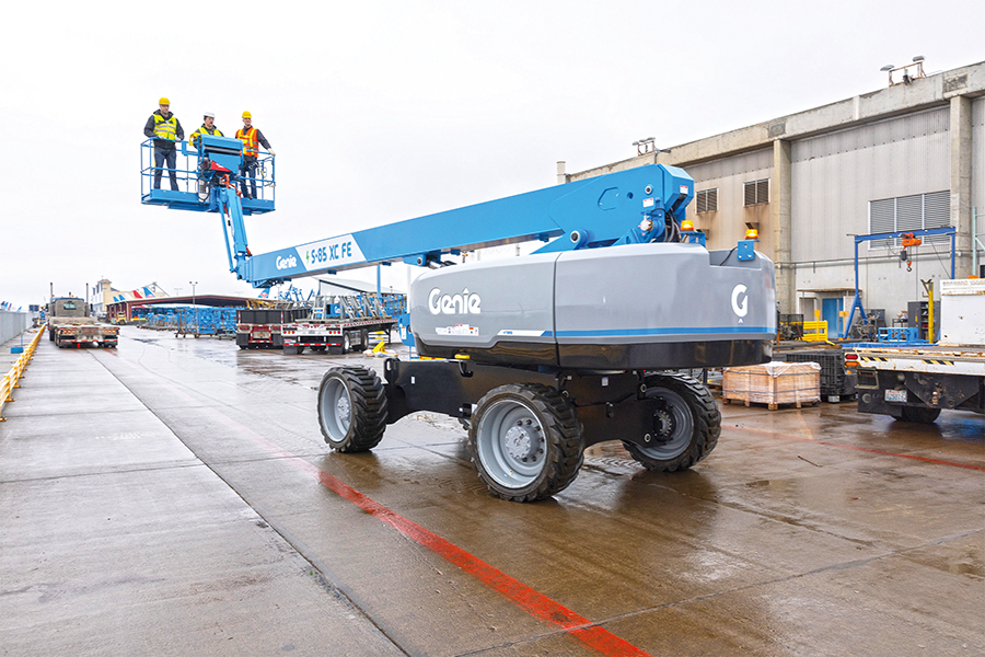 Destaque da Genie, o modelo elétrico S-85 XC FEutiliza baterias de íons de lítio de 48 V.GENIE.