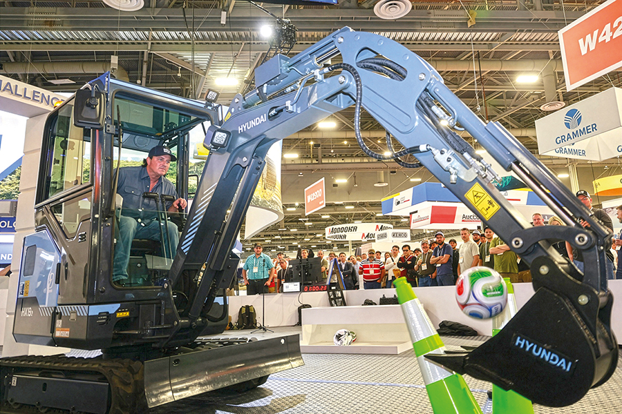 Outra atração do estande foi o “Operator Challenge”, que ofereceu prêmios de US$ 1.000 em dinheiro para os vencedores em cada dia do evento. O desafio de operadores disponibilizou a nova miniescavadeira elétrica HX19E (foto), equipada com bateria de 40 kW/h, para testes de desempenho. O desafio foi encaixar bolas em buracos designados com o uso da máquina, que promete mais de 10 h de operação com uma única carga e zero emissão.