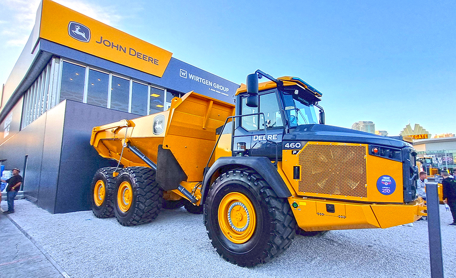 Expondo junto à Wirtgen, a John Deere destacousoluções como o basculante articulado 460 P-Tier.MARCELO JANUÁRIO.