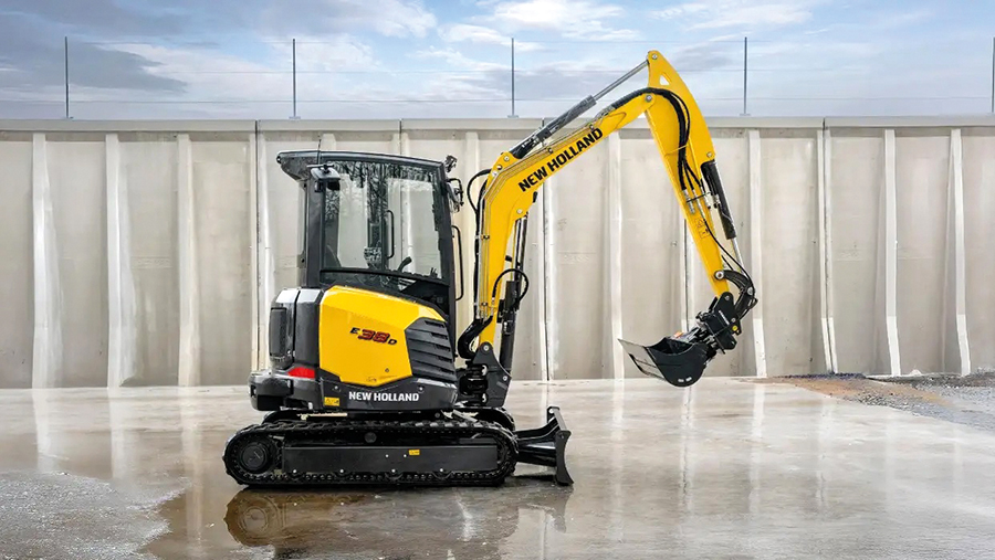 Miniescavadeiras da série ganharamdestaque no estande da New Holland Construction.NEW HOLLAND CONSTRUCTION.