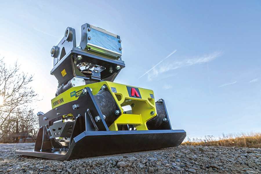 Destaque da Ammann, o compactador acoplável110/110 traz sistema vibratório de eixo triplo.AMMANN.