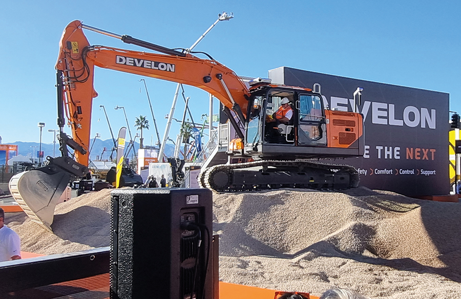 De volta ao evento, a Develon destacou novasescavadeiras pesadas como o modelo DX230LC-9.MARCELO JANUÁRIO.