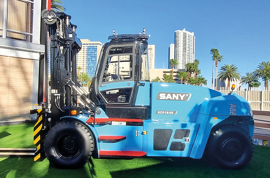 A empilhadeira elétrica SCP160E chamoua atenção dos visitantes no estande da Sany.MARCELO JANUÁRIO.