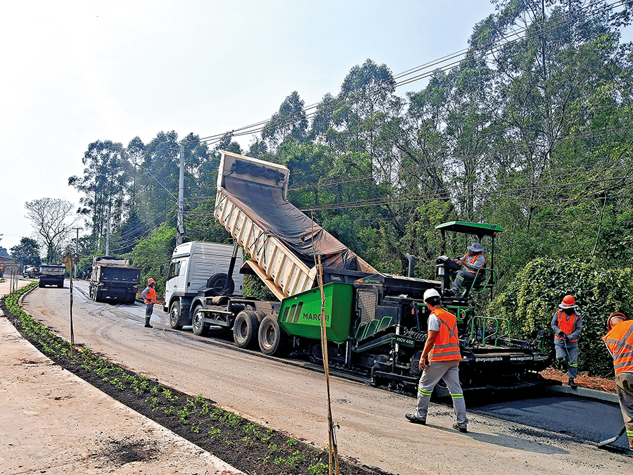 “Por fim, também não pode ocorrer o subdimensionamento da vibroacabadora, pois a máquina não consegue aplicar a massa recebida com agilidade e os caminhões ficam parados”, detalha Carvalho, explicando que a operação deve ser contínua, sem interrupções, especialmente em locais com restrições severas de tráfego.