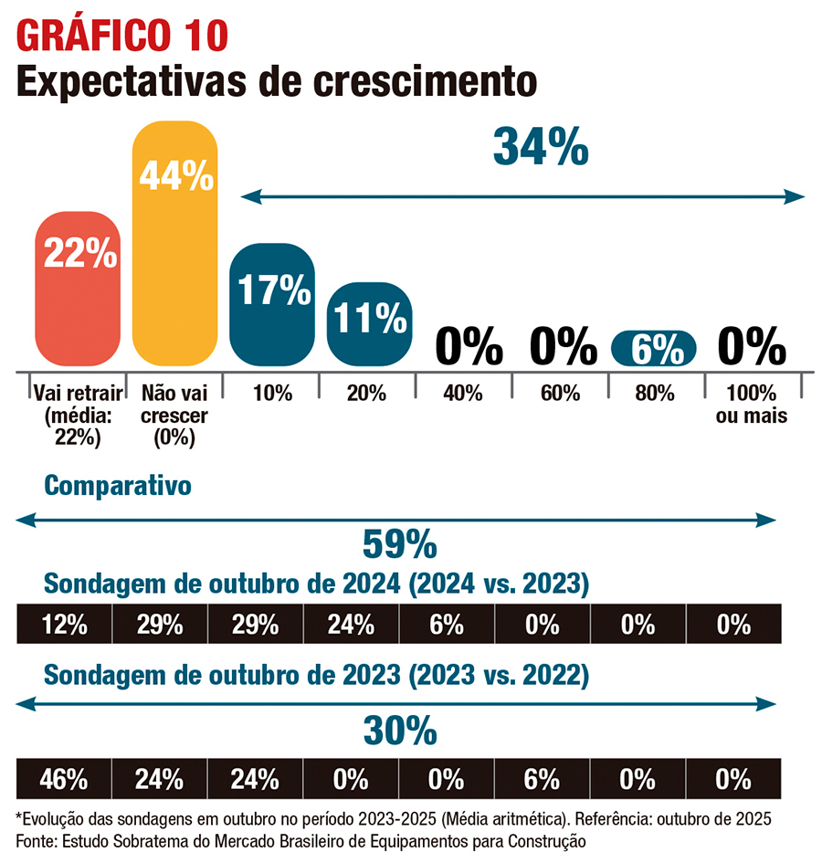 Em outubro de 2025, apenas 34% dos Dealers responderam que têm “expectativa de crescimento” das vendas em 2025, em uma ampla faixa entre 10% e 80% de aumento.