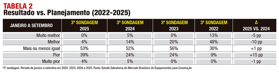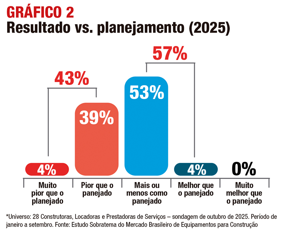 Do total de empresas participantes, 57% disseram que o período de janeiro a setembro de 2025 está “mais ou menos igual” ou “melhor” que o esperado em relação ao planejamento.