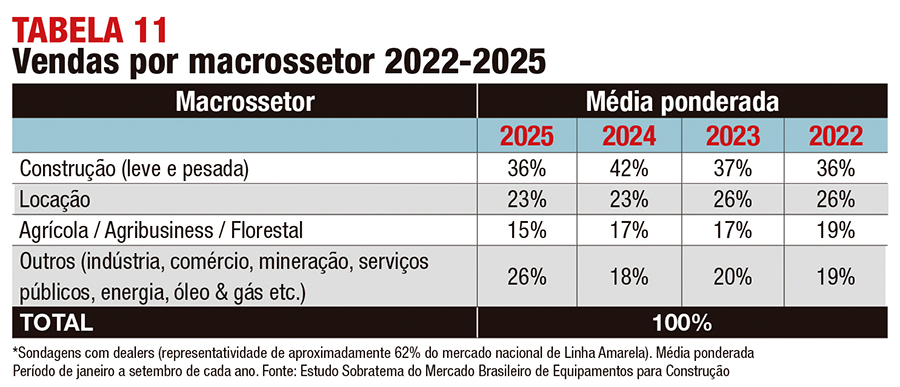Desde 2019, esse trio representa 76% em média do total das vendas na Linha Amarela, evidenciando sua importância para o mercado de construção no país.