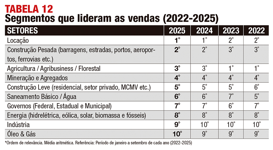 Os dados revelam que também estão alugando mais equipamentos pesados do que médios e compactos, evidenciando uma caraterística de demanda do mercado brasileiro.