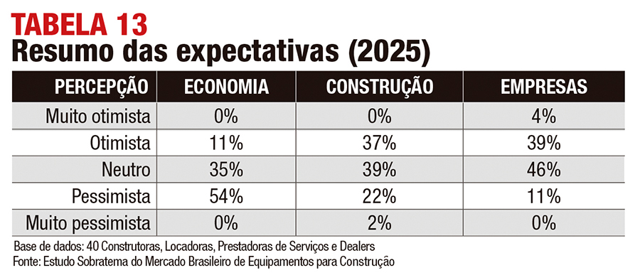 No comparativo interanual (v. Tabela 13), vê-se uma média de 48% de expectativa de crescimento (“muito” e “pouco”) no período de 2025 a 2027, o que é relevante – e revelador – para o setor.