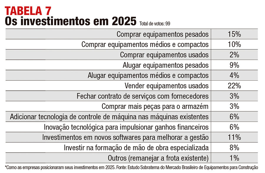 Todavia, a expectativa das empresas sondadas é que haja uma taxa de utilização maior das frotas paradas em 2025 (v. Tabela 10), com índice elevado de utilização alavancando as vendas.