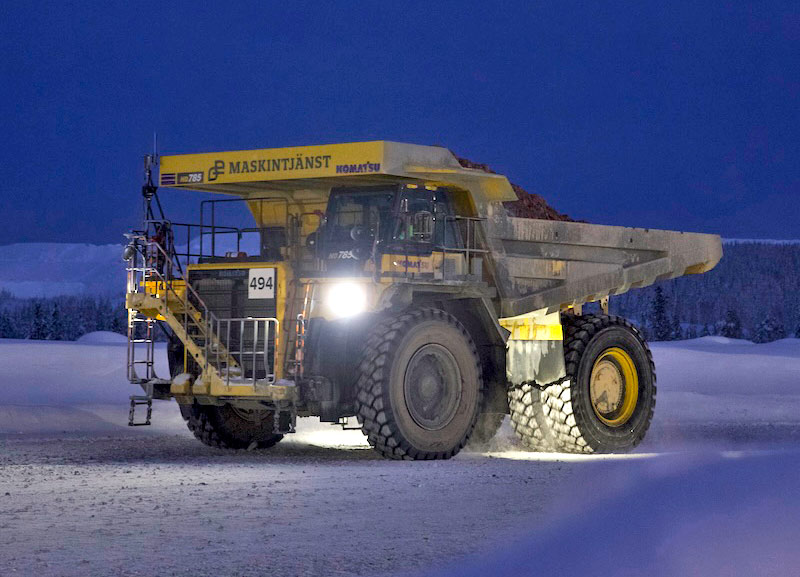 Enfrentando as condições operacionais mais difíceis do mundo, o caminhão Komatsu HD785 realiza o transporte de materiais em minas de ouro no Gana e de cobre na Suécia.