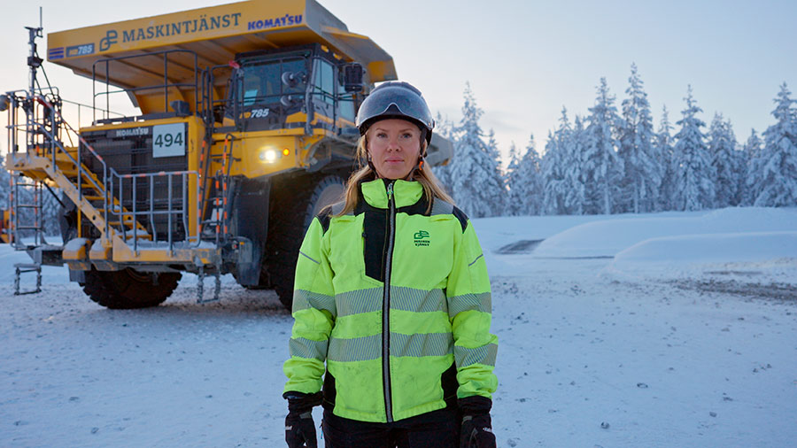 Operando o caminhão HD785 há três anos e meio, Caroline Landström destaca as condições desafiadoras na Suécia