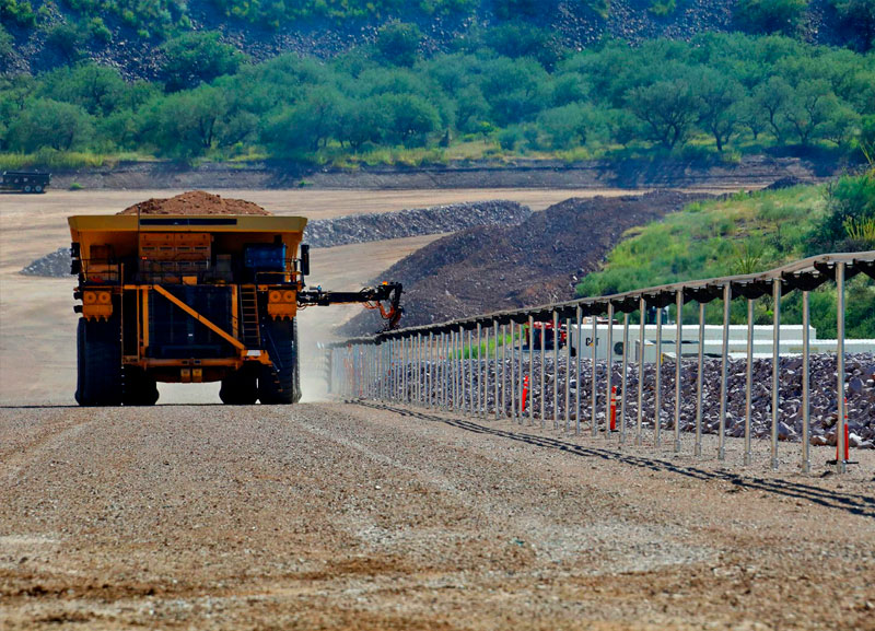 O teste, que deve durar aproximadamente um ano, envolverá caminhões Cat 798 AC e a instalação de trilhos em uma das rampas onde as máquinas operam.