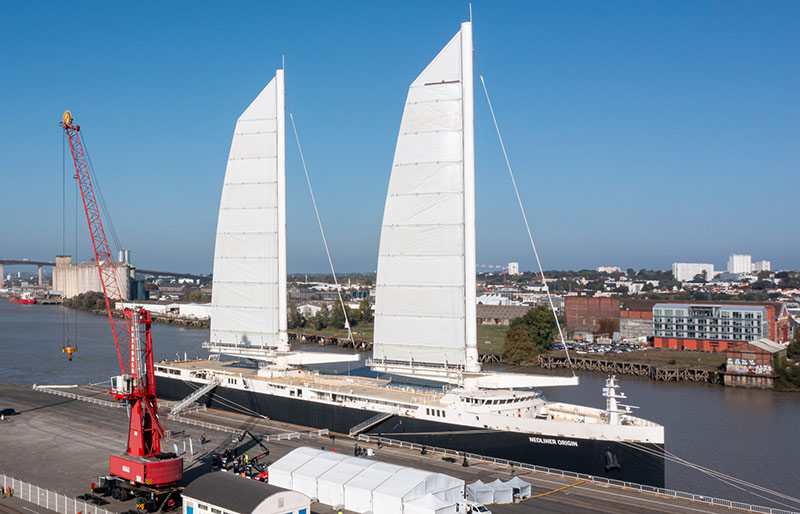Com 136 m de comprimento, o navio Neoliner Origin está equipado com 3.000 m quadrados de velas e deve reduzir as emissões de CO2 em mais de 80%, na comparação com um navio de carga convencional com a mesma capacidade.