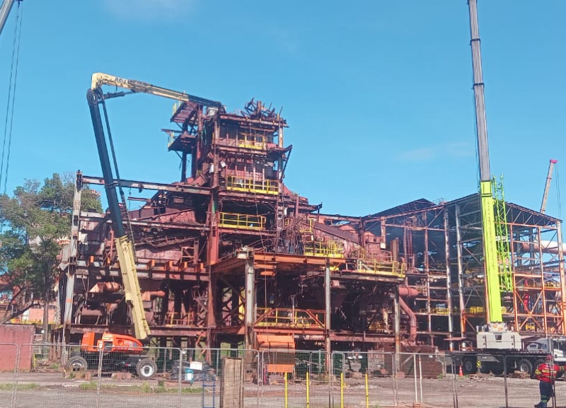 As plataformas elevatórias estão sendo usadas na desmontagem de equipamentos instalados a mais de 40 metros do solo.