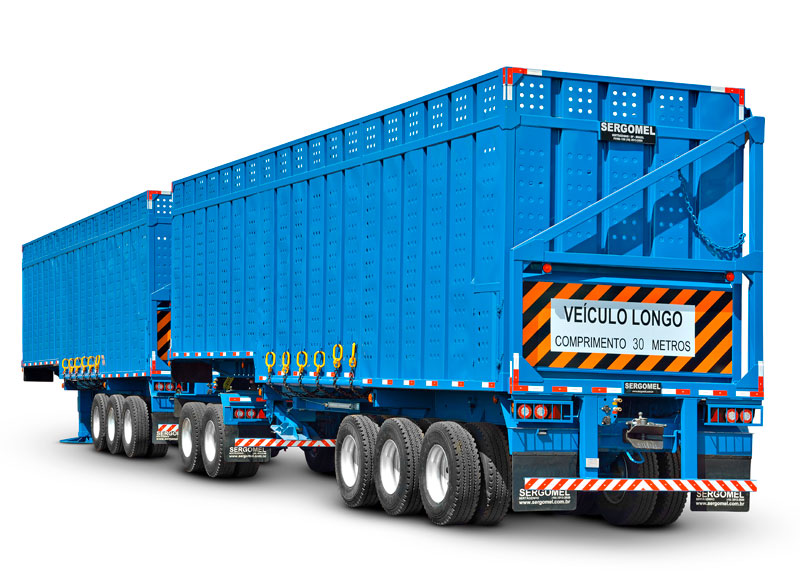 ...Referência na fabricação de equipamentos para transporte rodoviário, canavieiro e florestal, a Sergomel traz ao mercado o Rodotrem 11 eixos, um modelo com comprimento de 30 metros, largura de 2.600 mm e capacidade de 91 toneladas.