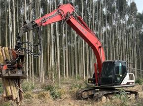 Com promessa de baixo consumo e versatilidade, equipamentos da série X3E da Link-Belt são utilizados em colheita florestal no interior paulista
