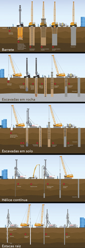 Mas seja qual for a solução adotada, os elementos das fundações profundas são executados inteiramente pelos equipamentos, sem que – como acrescenta Fontes Filho – “haja a necessidade de descida de pessoas nas perfurações em qualquer fase da execução”.