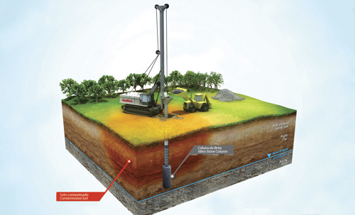 Estacas do tipo brita são feitas por vibração, melhorando a capacidade de suporte do solo