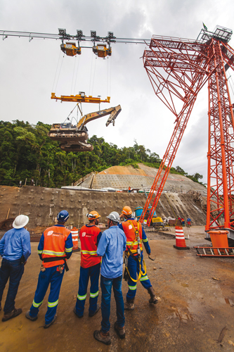 Para evitar que isso ocorresse, a equipe de engenharia pesquisou várias soluções capazes de resolver o problema. “Sabíamos que alguns países fabricavam teleféricos para transporte de cargas pesadas em obras”, relata Siqueira. “Até que, após diversas consultas, identificamos uma empresa de engenharia que fornece a solução apropriada.”