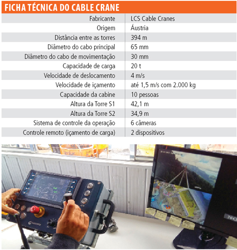 A LCS Cable Cranes, fabricante do Cable Crane utilizado na obra, atua há mais de 20 anos com transporte de cargas em terrenos acidentados utilizando guindastes teleféricos. Com sede na Áustria, a empresa já executou mais de 20 projetos nos cinco continentes. No Brasil, é o primeiro.