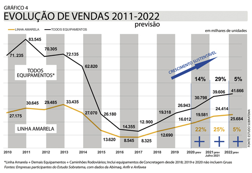 Com os números ajustados, resta esperar que as previsões do 14º Estudo de Mercado se concretizem como o previsto – ou até superem – em sua próxima edição, a ser divulgada pela Sobratema em novembro. “Em 2021, o mercado brasileiro chegará a quase 30 mil máquinas, o que representa o teto do ‘crescimento chinês’ que tivemos em 2013, quando o setor registrou 10% acima disso. Isso é desenvolvimento sustentável, é o que essa indústria busca”, celebra Miranda.